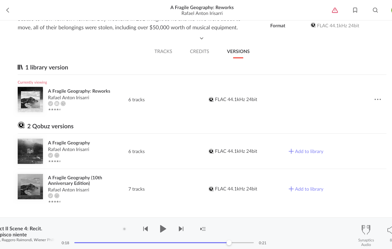The album I currently refer to is ‘A Fragile Geography’ by Rafael Anton Irisarri, the re-works is ‘A Fragile Geography: Reworks’, and my streaming service is provided by Tidal.