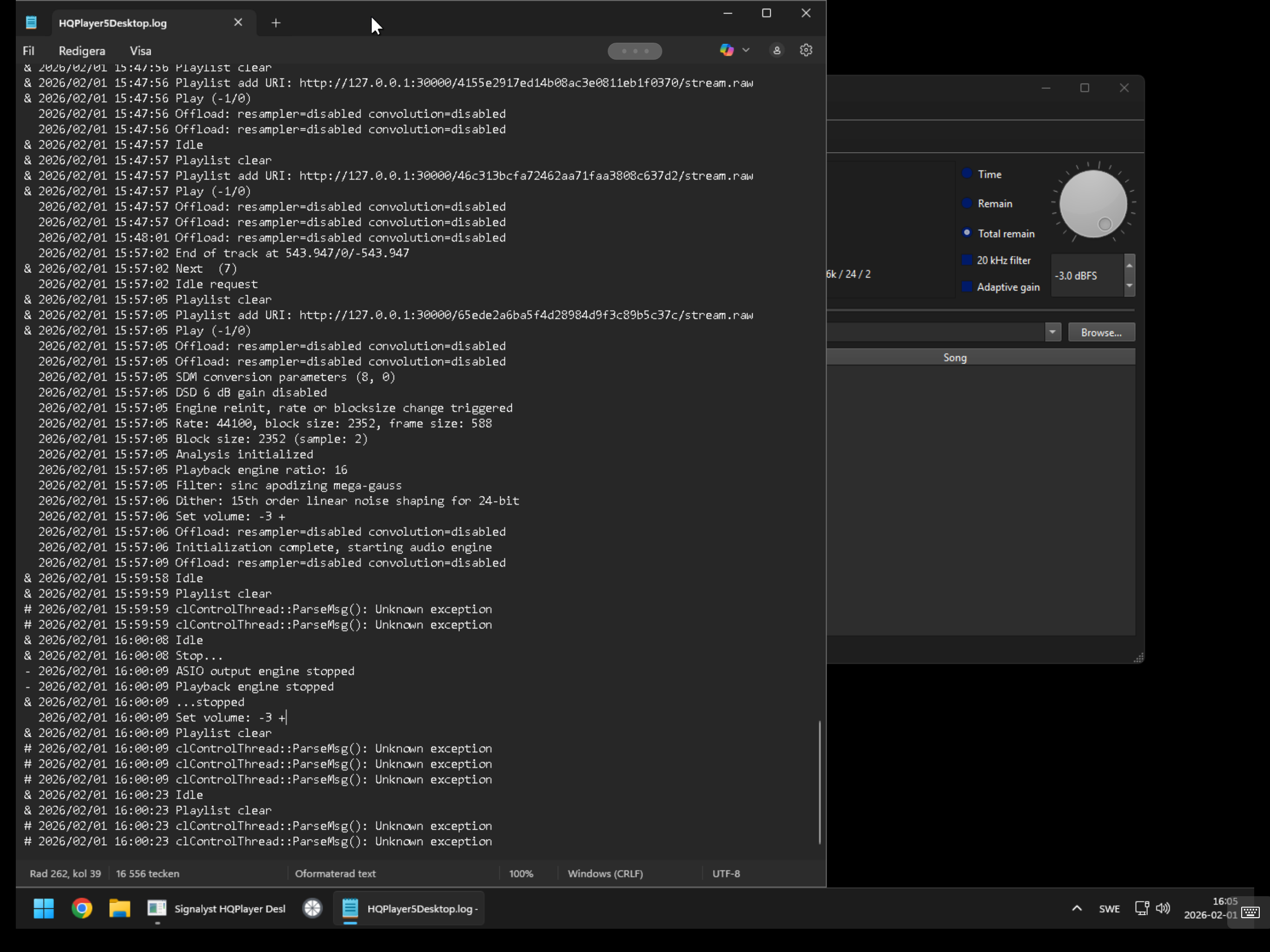 Tell us what's going on · Hqplayer - ”unknown exception” on track change when playing in Roon with HQPlayer as Zone