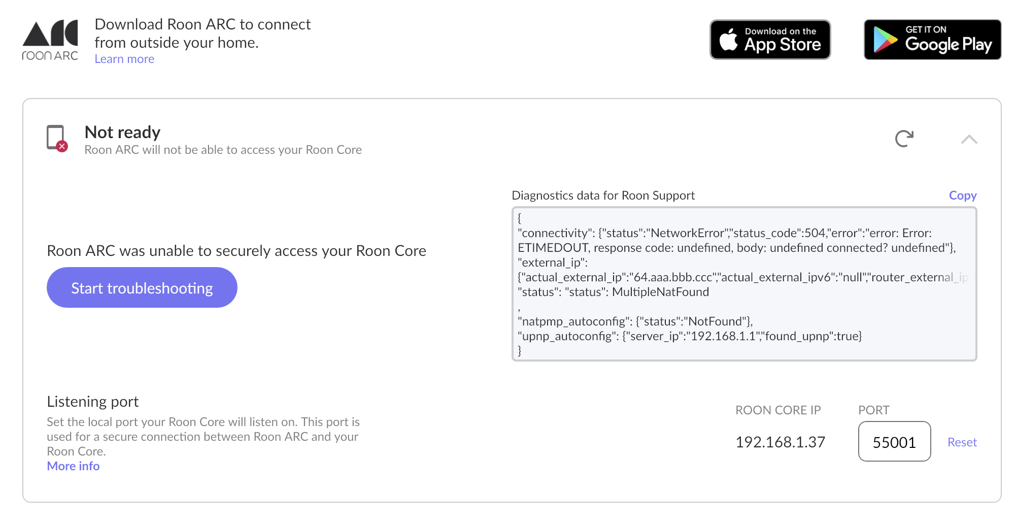The IP and the port number in the Roon ARC settings are consistent with your rule on the router - so far so good.