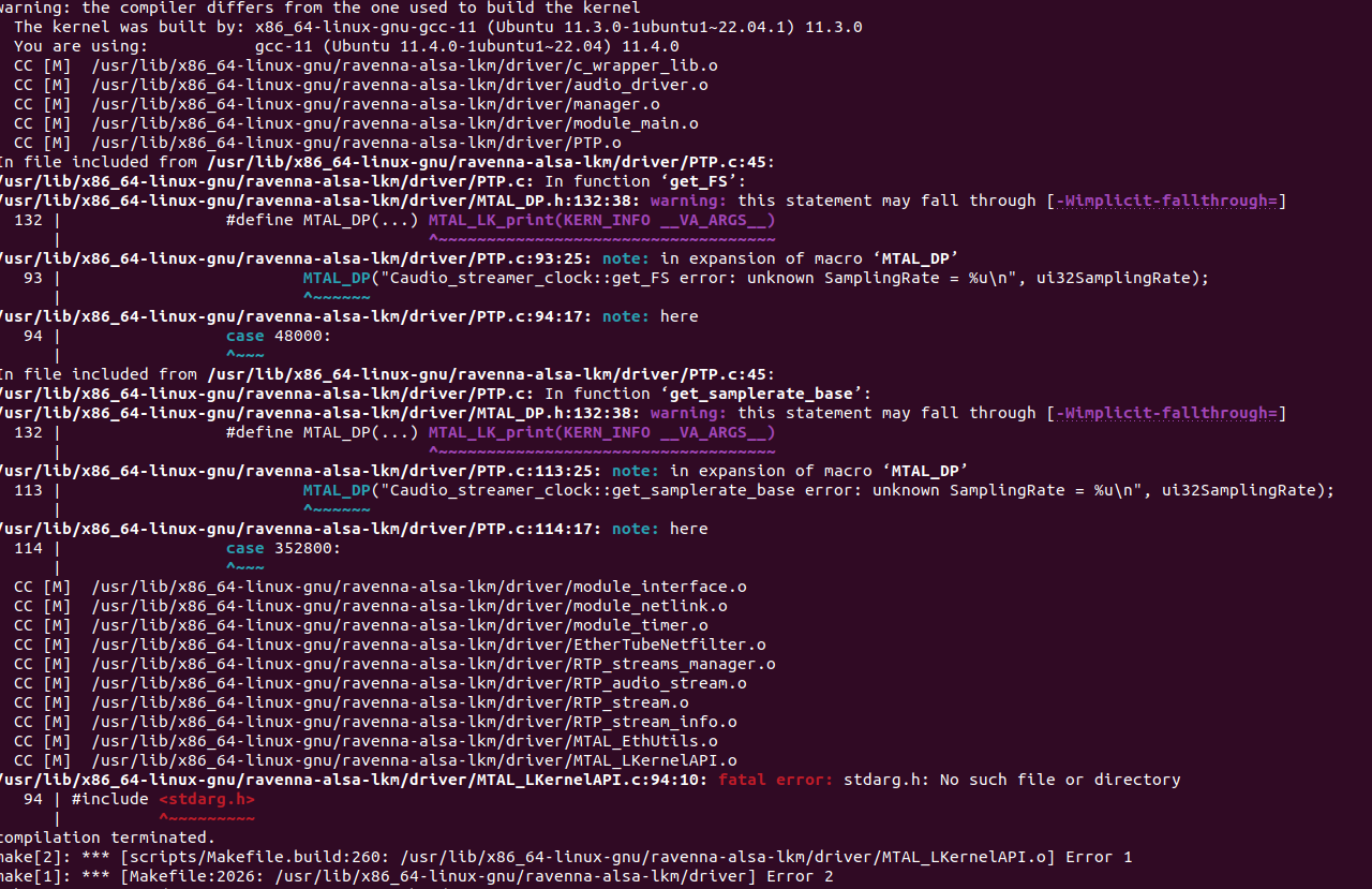 Would you move the ravenna-alsa-lkm folder to your home directory and try again? Under /usr/lib/x86_64-linux-gnu directory might have permission issue.