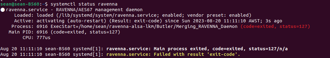 Ravenna daemon not running. Would help me go to ravenna-ALSA-lkm/Butler directory and using terminal to run the daemon? Type