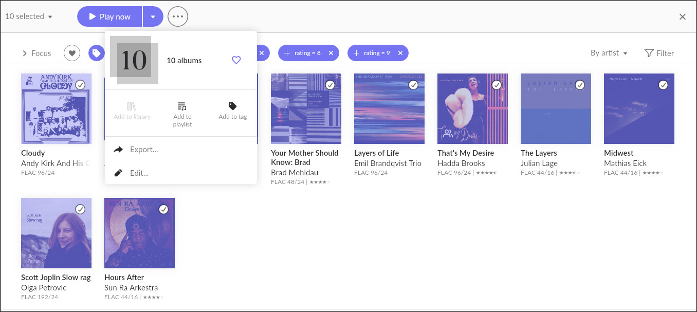 This is a silly admission, but I keep forgetting about the capability to do “select all” on the albums page. I seldom find issue with the fine roon interface, but this is a case where I think it should be more obvious. As @Traian_Boldea says, you can select all for any album search, but its sort of hidden: you have to right click on one album to bring up the menu option “select all”.