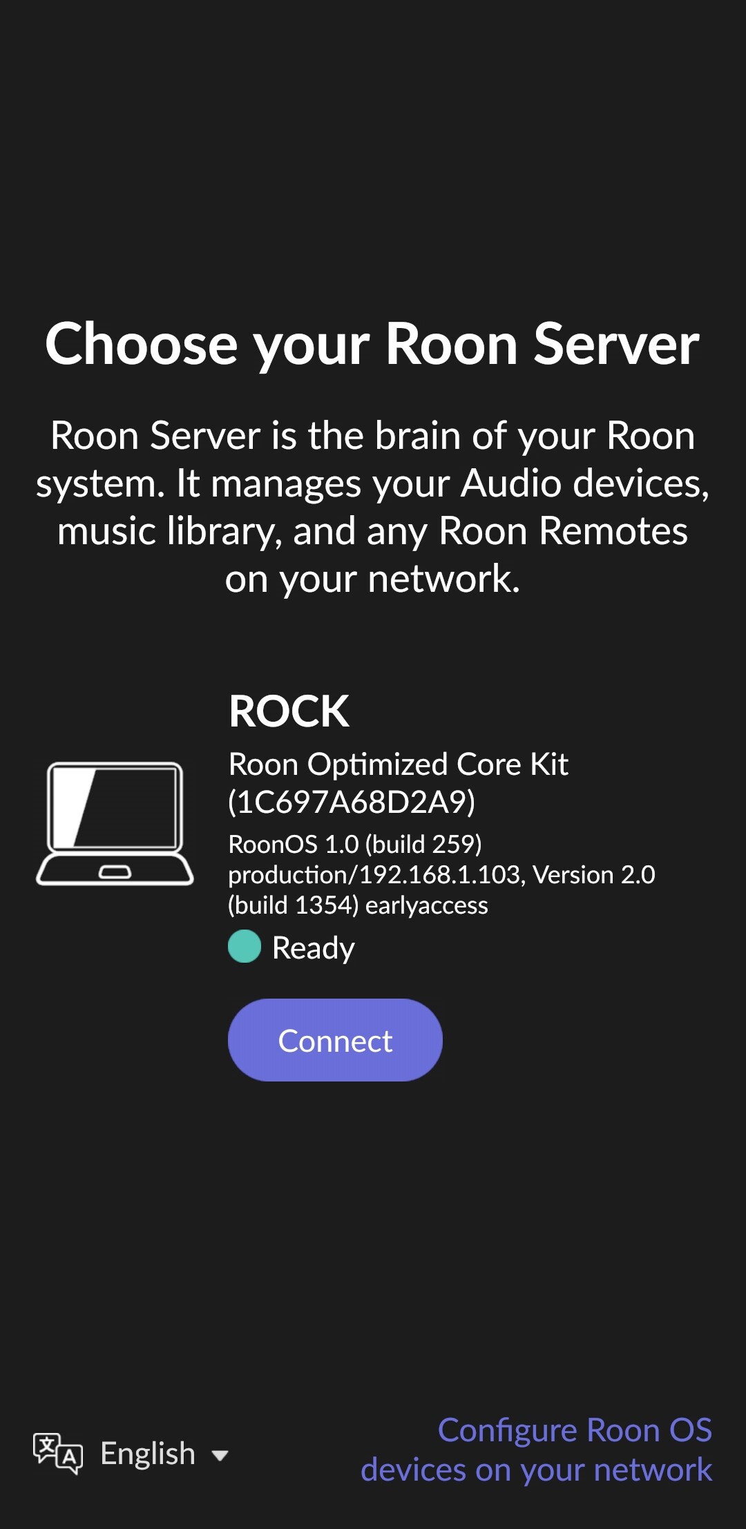 - If I click the “Configure Roon OS devices on Network” my server is visible: