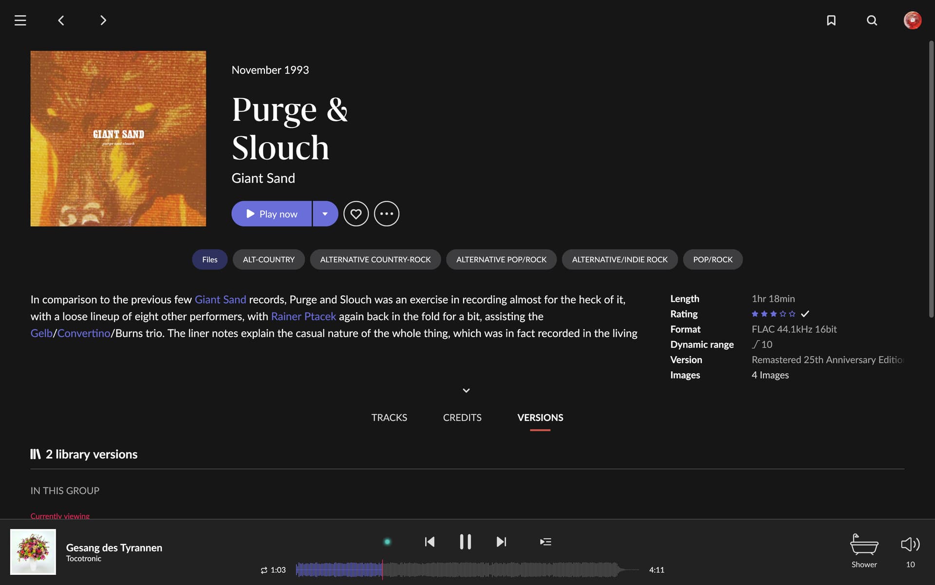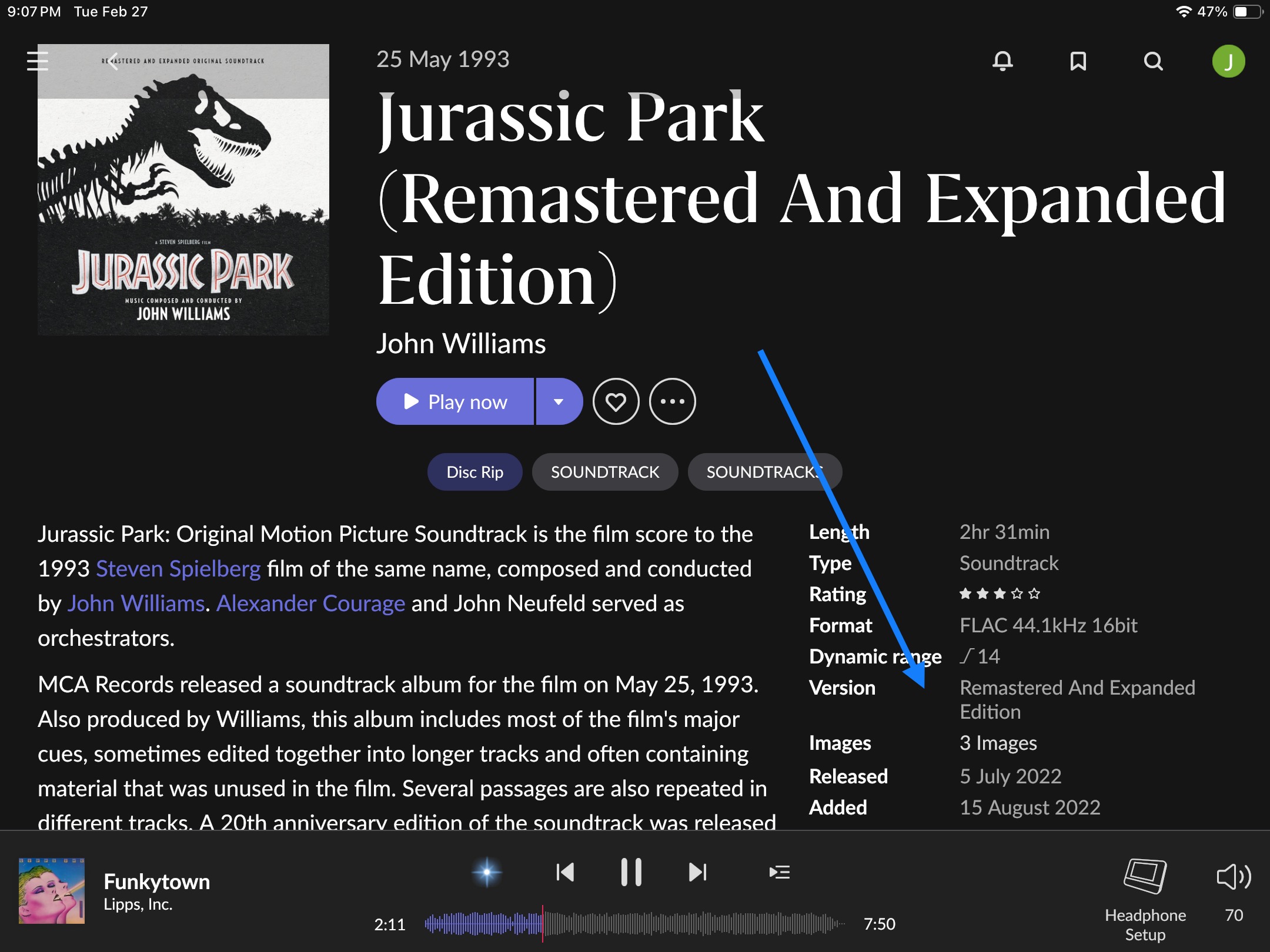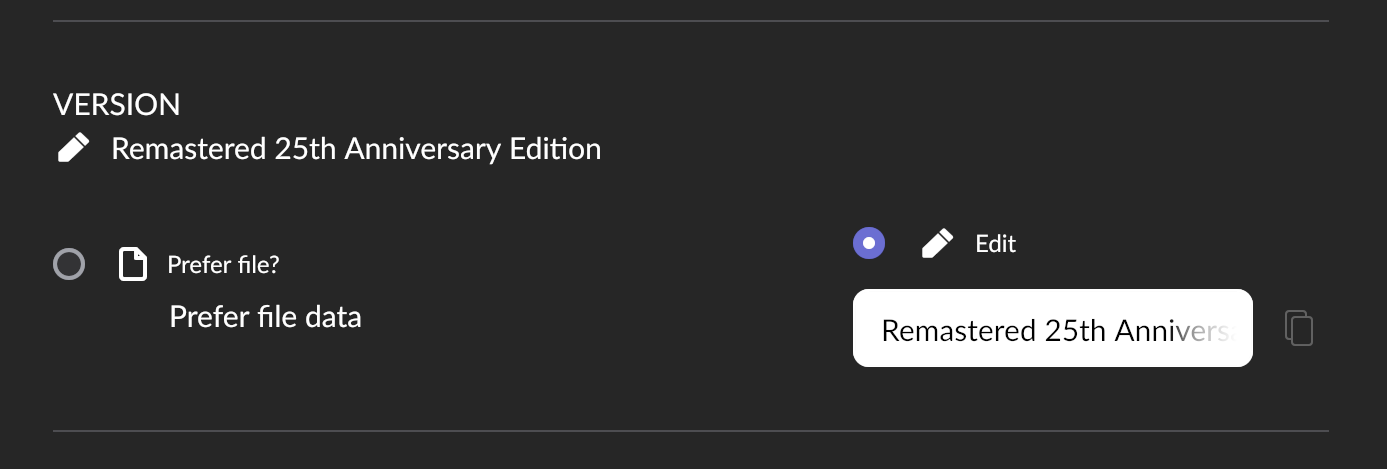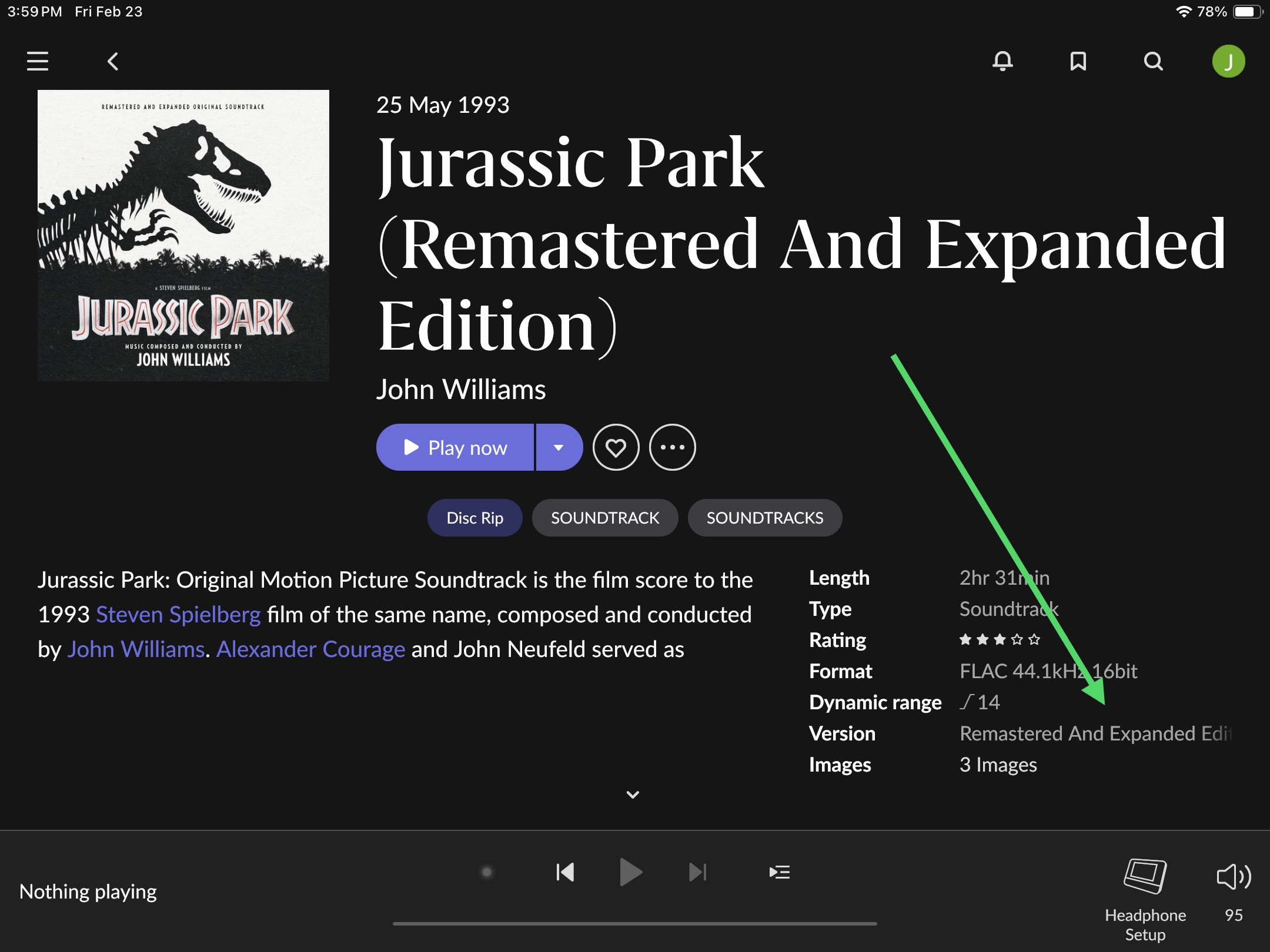 Moving this automatically into Roon’s version field does not work for streaming albums (despite the choice in the library import settings), but I always move it manually because I find it horrible to have this in the album title. So I go to the album editor, fix up the album title manually, and copy the version part into the version field: