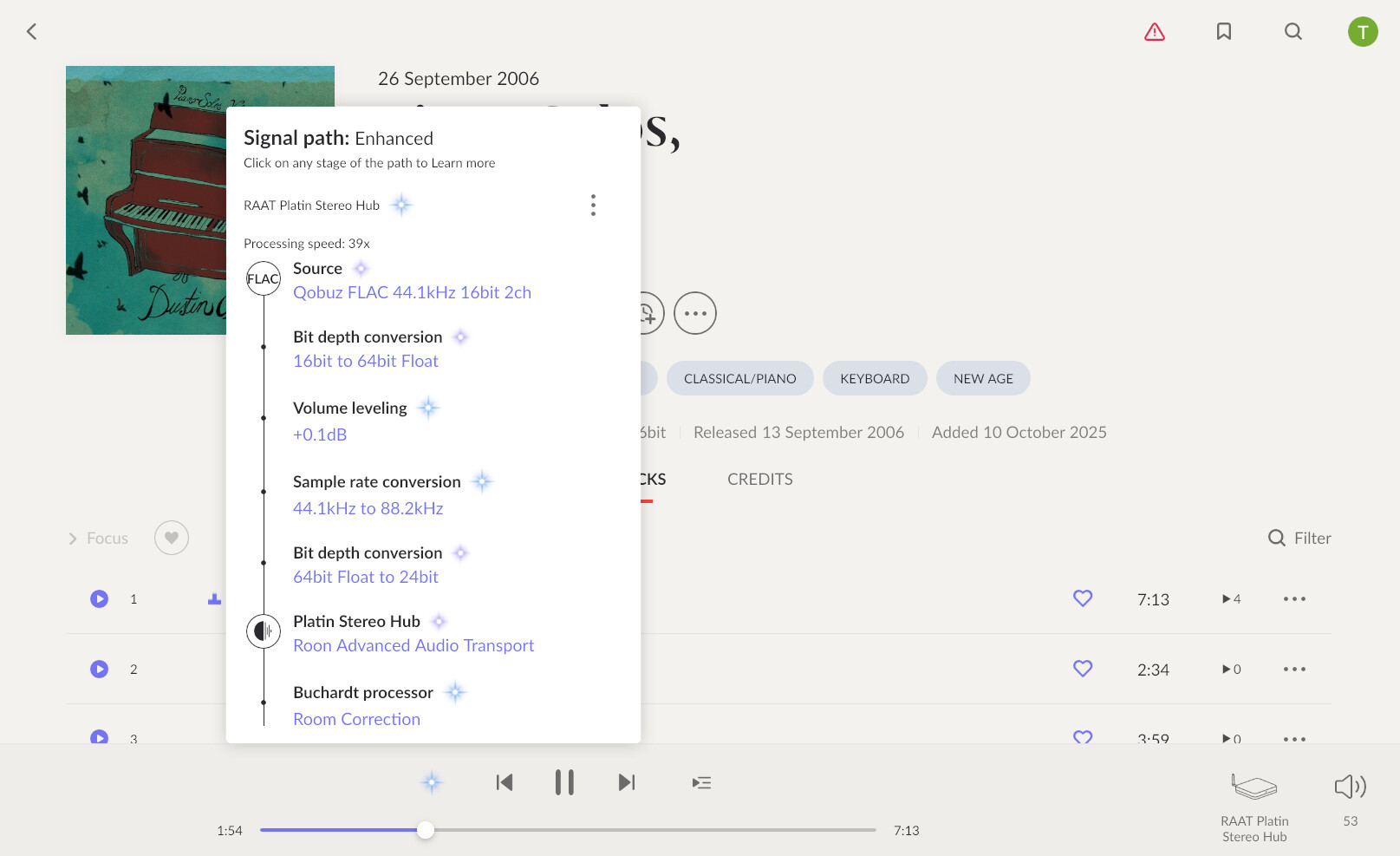My target LUFS is set to -14dB (default). I get +0.1dB levelled on the Qobuz version of that track so that’s already a big difference. I don’t have a local version so I cannot make a direct comparison. But I must say that first track seemed a little quiet, not much, but enough by comparison for me to reach for the volume control to level out the rest of the queue. I don’t think I would have noticed very much if I had been playing the albums back-to-back, it was a small difference. But I did find it noticeable with Qobuz and local tracks shuffled.
