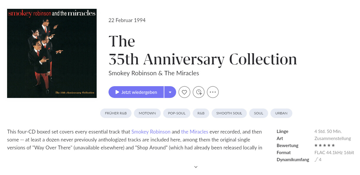 Available on Qobuz and Apple as a blatantly obvious vinyl rip which sounds like they didn’t even bother to clean it beforehand. My vinyl copy from the fifties sounds better.