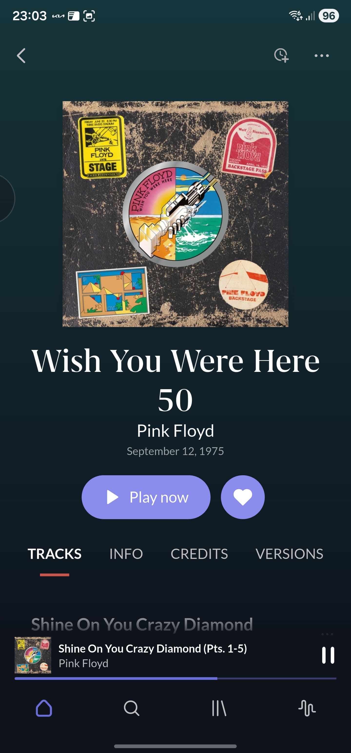 I’m slightly obsessed (for some reason) with the Part 1-9 complete version of Shine On You Crazy Diamond. Love it.