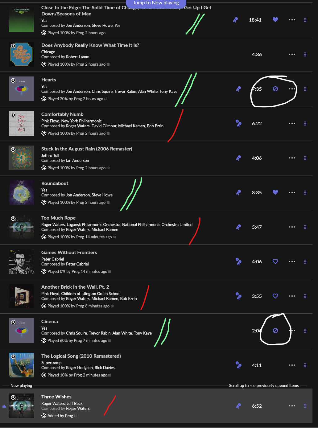 Note that two of the Yes tracks was banned in my local library/profile. This should not happen, though i have seen this a few times recently .