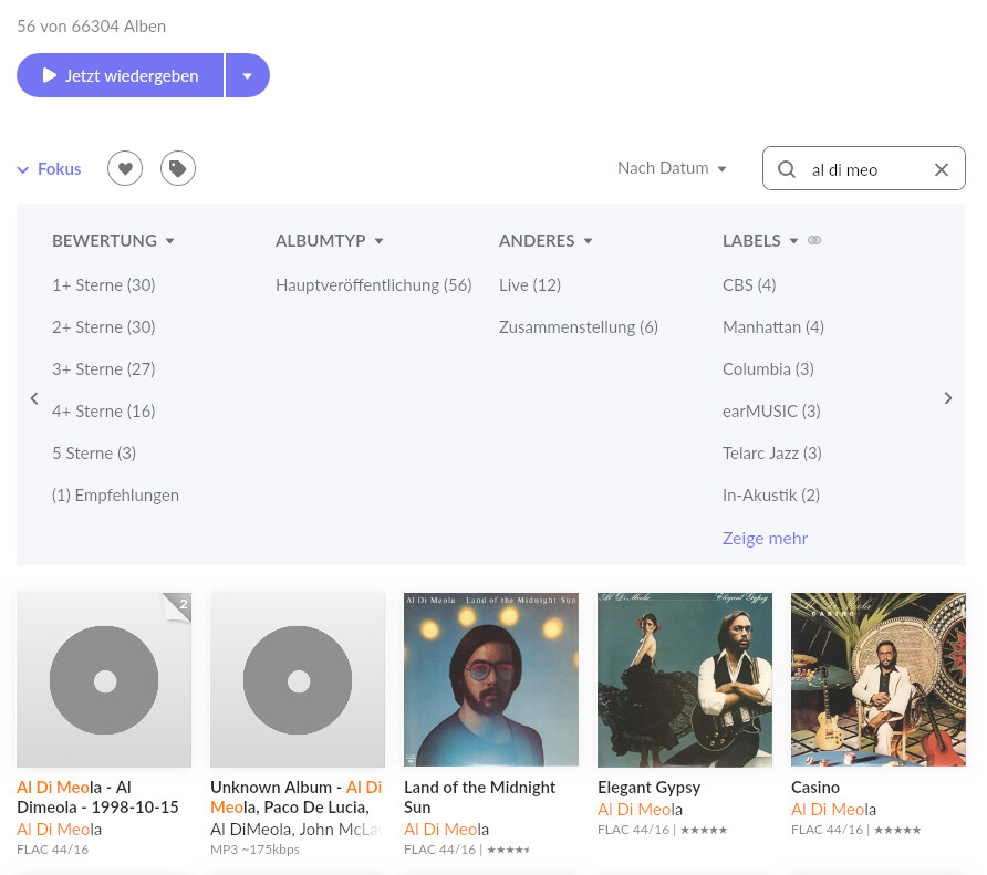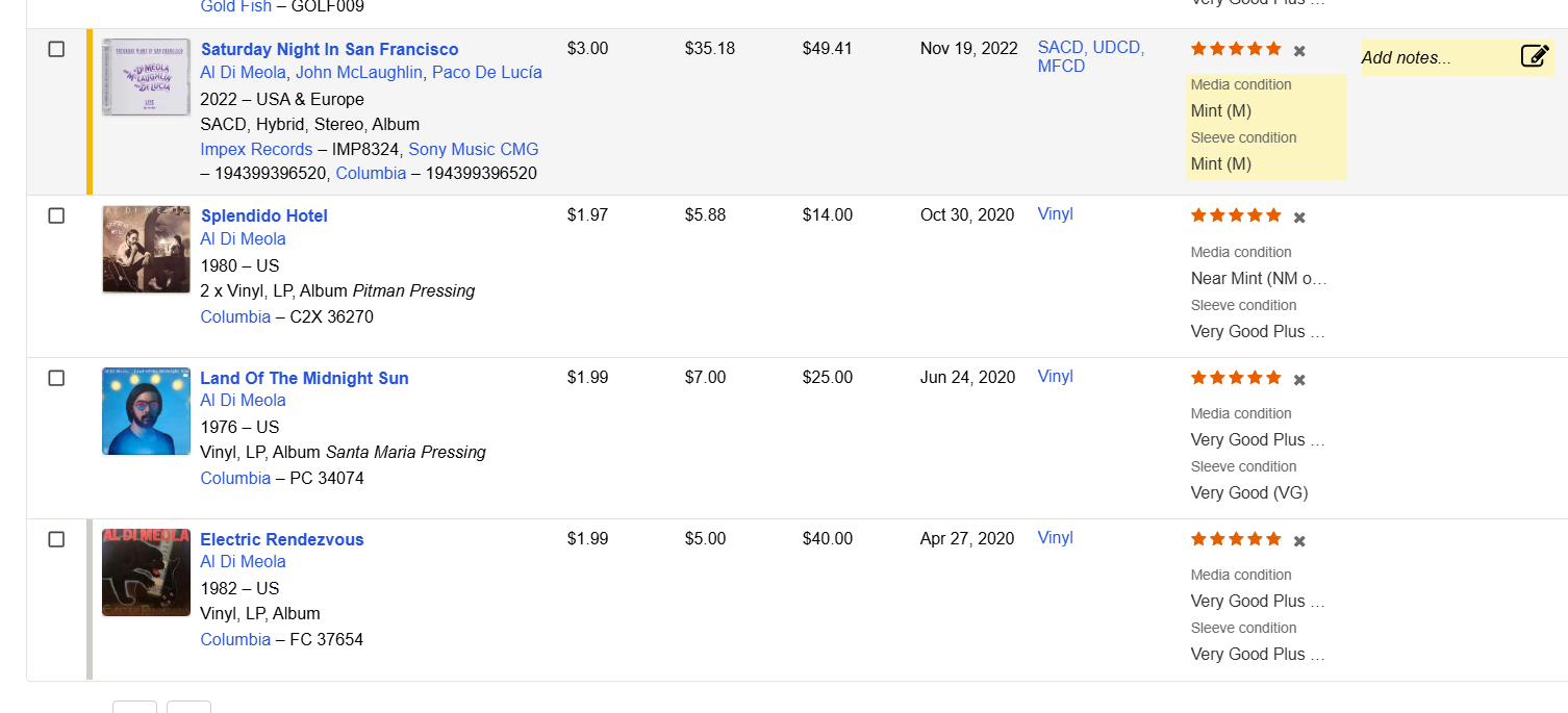 My screenshot showed only the four albums I had given 5 stars in my collection, a load more Al Di albums but only with 4 stars…lol.