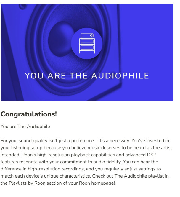 You love organization and having everything in one place. For you, music is a collection to be carefully assembled and maintained. Roon’s unified library speaks to your desire for order, allowing you to seamlessly blend local files with streaming services in one cohesive experience. You appreciate being able to browse your entire collection without barriers between sources, making your musical universe feel complete and interconnected. Check out The Curator playlist in the Playlists by Roon section of your Roon homepage!