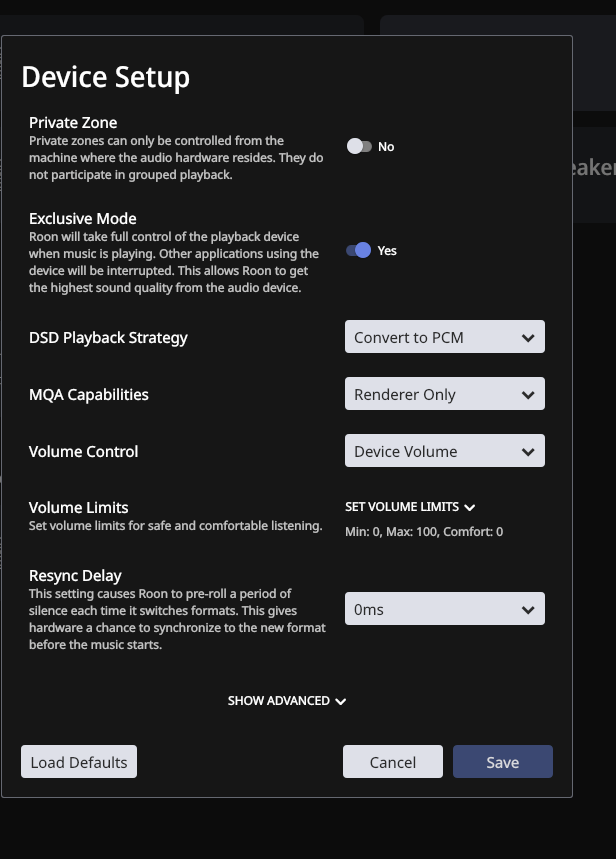 These are the default settings, now what I’m wondering about is about the DSD Playback Strategy and MQA Capabilties settings. Are these the best ones for my setup?