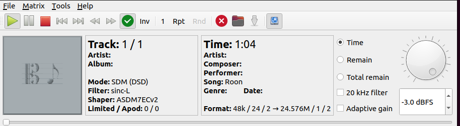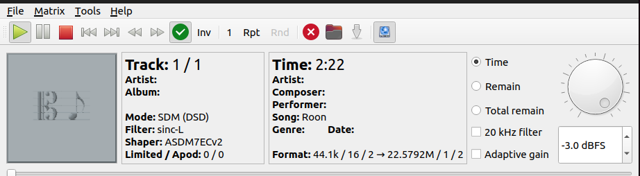 I know, but if itās my only option for playing 44k material @512 Sinc-L/ASDM7ECv2, Iāll take it. I thought it was going to sound terrible. But it doesnāt. Thatās very surprising! What I hear is mainly the sound signature of 512 Sinc-L/ASDM7ECv2, not that of Roon.