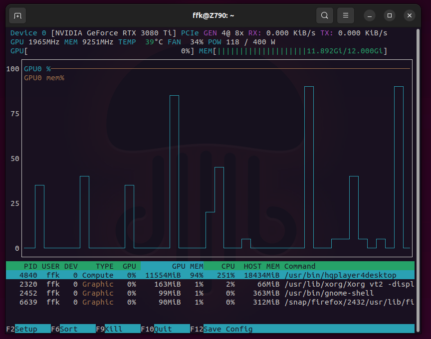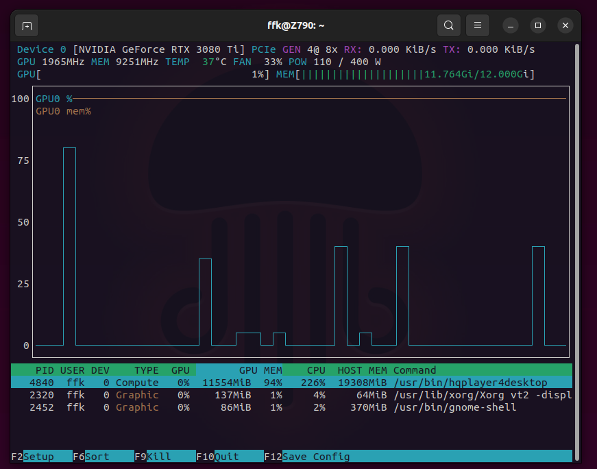 lots of vram usage⦠Iām sure the type of music will have an impact on how it uses the GPU. I just picked some classical.