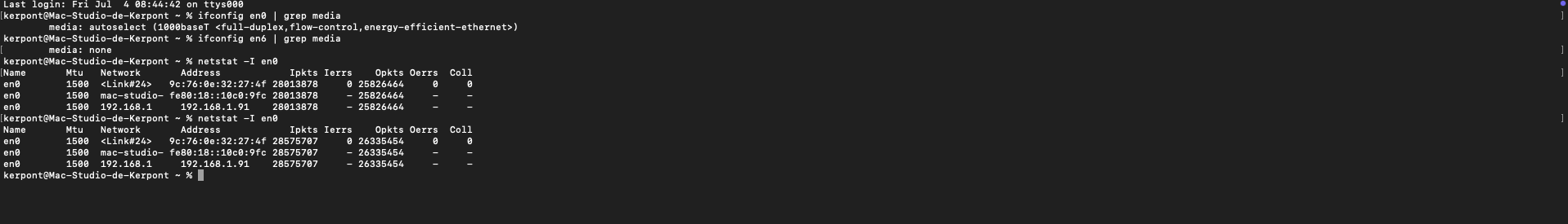 Still can’t get flow control to hold if set manually but ifconfig en0 | grep media in Terminal seems to say it’s OK. I’m puzzled by netstat -I en0 : number of packets in and out differ but 0 error.
