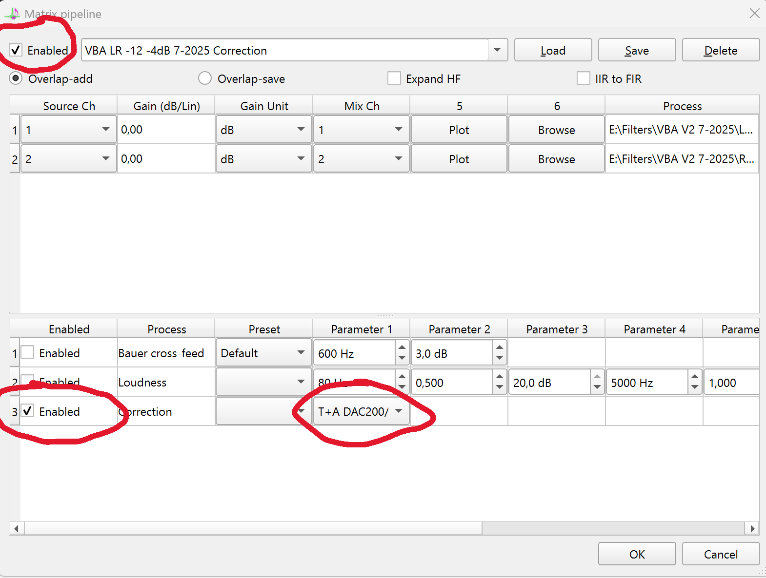 Ignore those, theyāre my personal DSP filters. Just check the settings I marked with red circle.