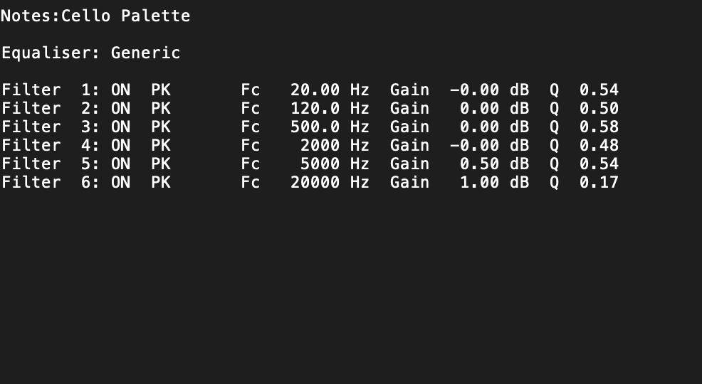 That being said, I barely understand it. But AI does. And I have been banging away at Gemini (see screenshot) and generating process strings (EQ settings you put in the Matrix profile) as I try to build my own intuitive understanding. But I don’t know if I’ll ever as be as good as the machines; if you don’t like the sound of the EQ you get from AI, then tell it what you want to hear, i.e. bring the guitars more forward, balance the instruments, or mix the vocals more with the instruments (useful if you like noisy 80s/90s alternative rock), and it will spit out something more to your liking.