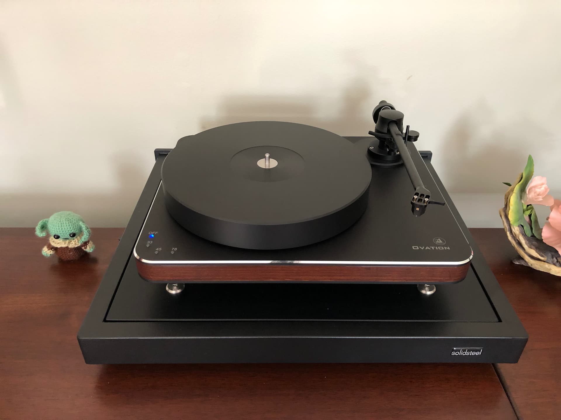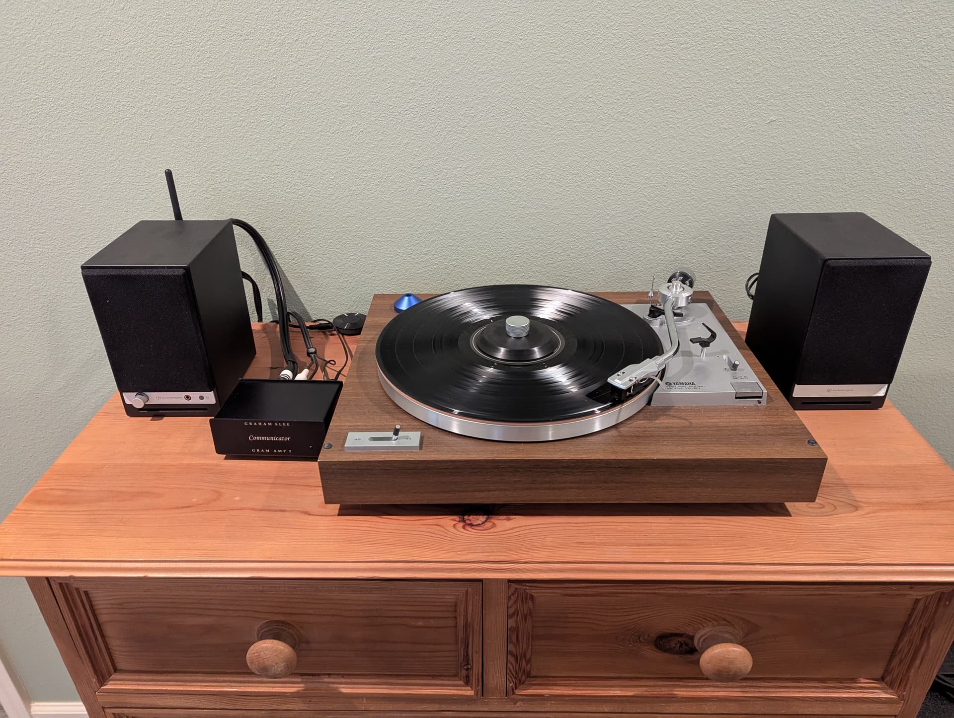 My latest turntable setup thrown together with mostly pieces I had laying around, definitely a case of the sum exceeds the parts here.