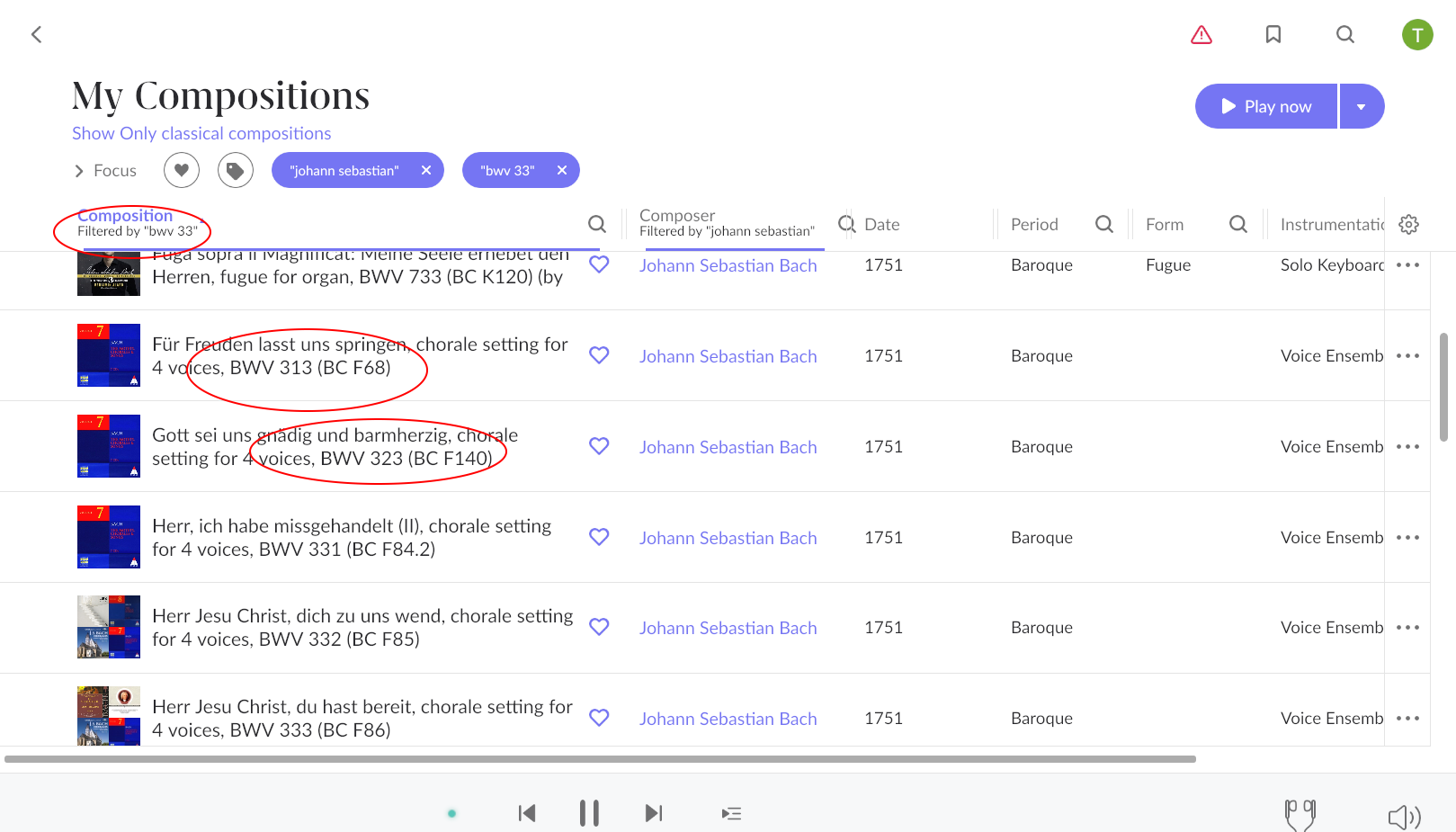 However, I do now notice that the filter seems to be responding to individual text groups, so a filter of Op. 3 is including results such as Op. 26/3 and Op. 14/3.