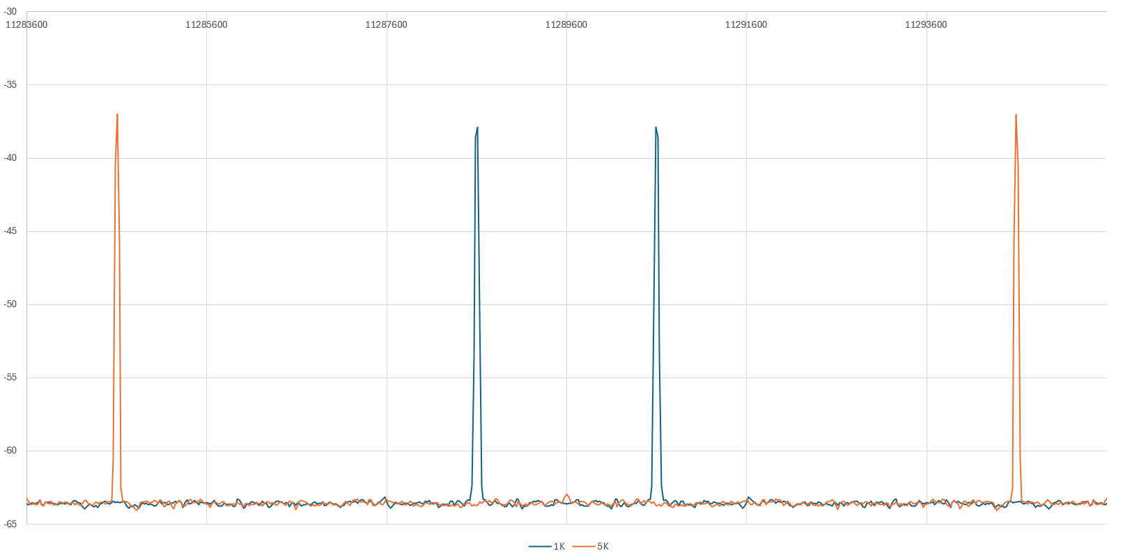 Up until first image, the two spectras perfectly overlay with no difference. And also beyond that, the noise floor is completely identical.