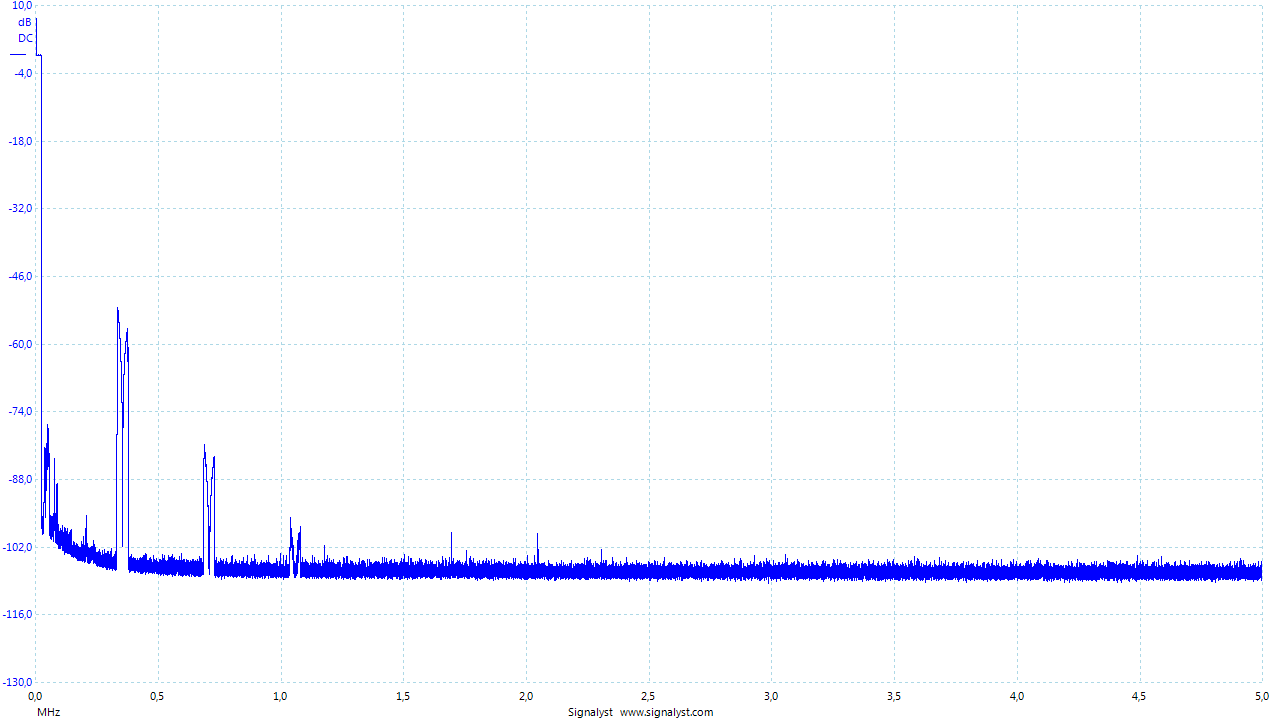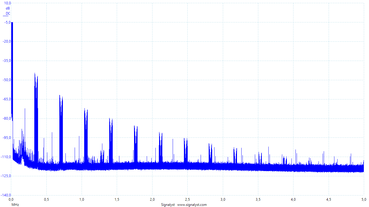 This is what you get also with the multi-bit DAC chips as I have shown before. This is fundamental difference between 1-bit and multibit converters. Multibit converters will always have spectral images of the input signal at multiples of their input rate. And spectral images are always correlated. This happens when word length is not entirely filled with pure noise. More bits you have (longer the word length), stronger the images will be compared to the noise level.