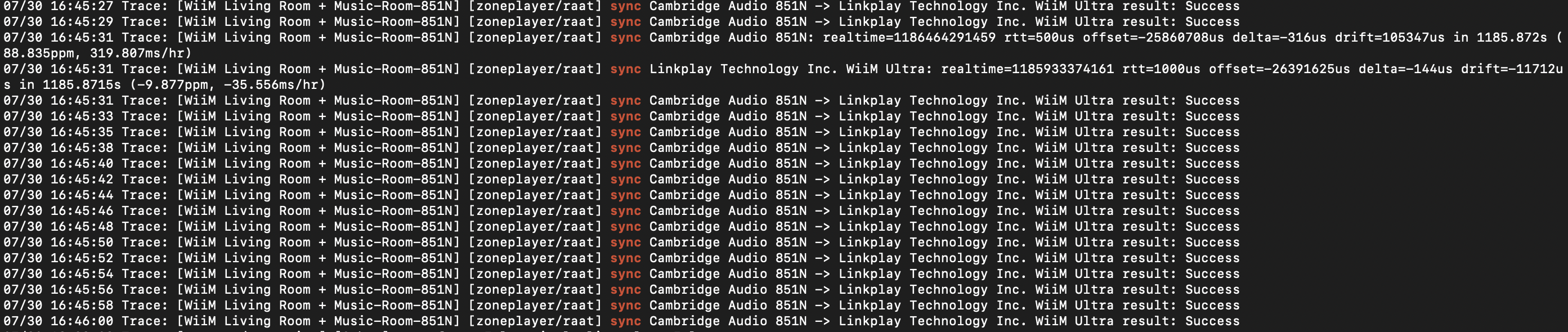 As the screencap shows, the Roon logs looks good for keeping two devices in sync. In this example, the Music-Room-851N device is wired.