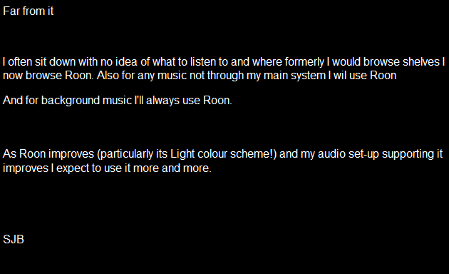 @Sloop_John_B Does this mean that you do not use Roon at all? It sounds as if you are staying with physical media.